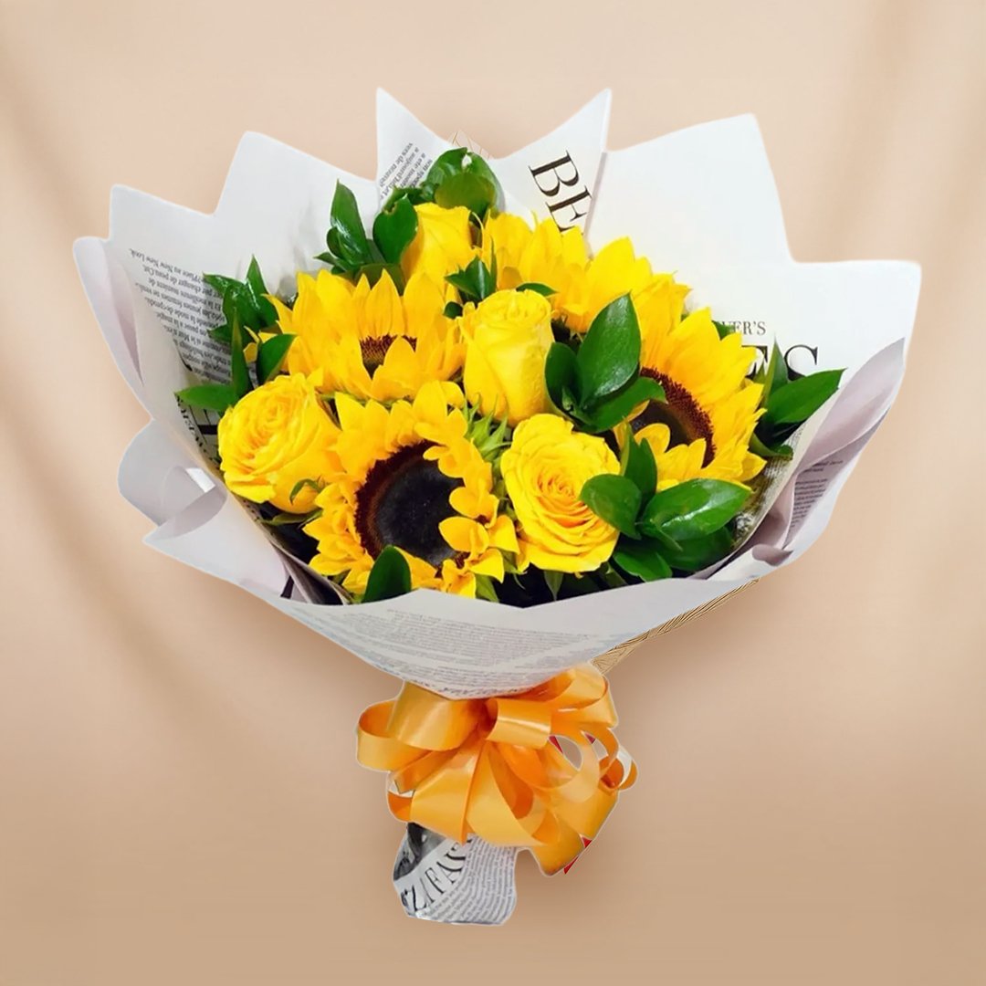 Haz de cada momento algo inolvidable con el ramo de rosas amarillas y girasoles envuelto en papel coreano. Su diseño único y su mensaje de alegría y aprecio son perfectos para demostrar cuánto valoras a esa persona especial.